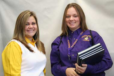 Shirt colors are purple, gold, and white.